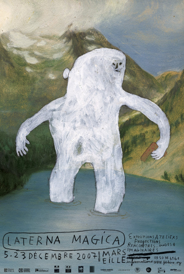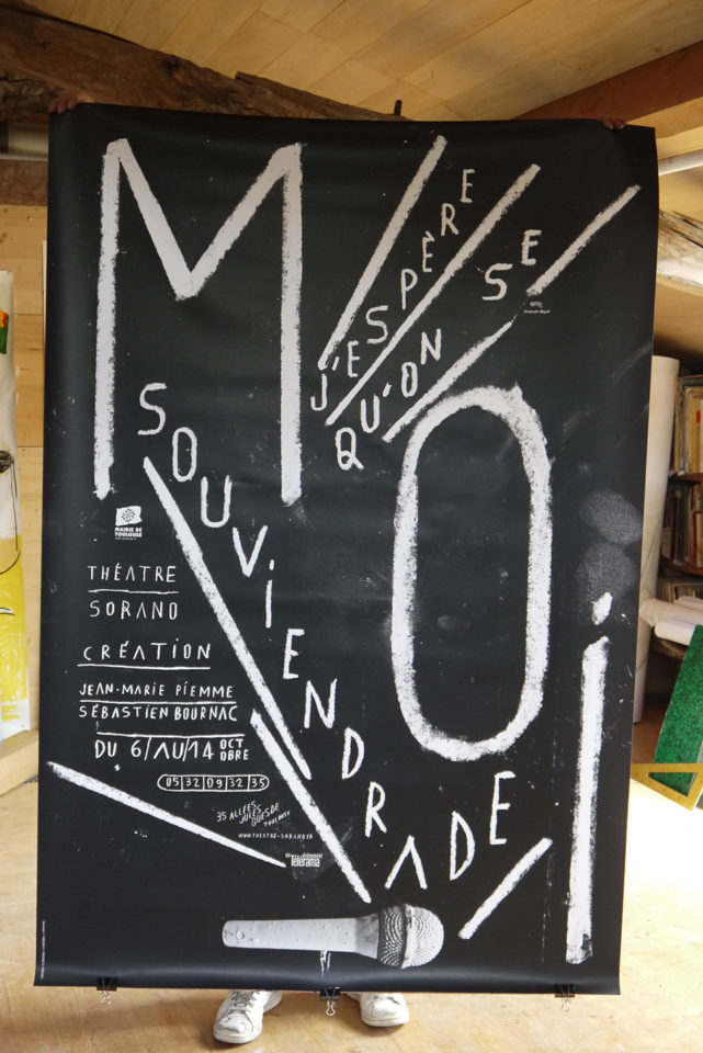 Surtout, l’ENSCI lui a donné le courage d’assumer ses envies. Il fréquente le monde du théâtre, de la musique, de la danse, des bonimenteurs, du cinéma d’animation…, se passionne pour la BD dissidente, la peinture (surtout Matisse) et pour les grands noms de l’affiche des années 20, 30, 40 ou 50 – Michel Bouvet, Carlu, Savignac, les frères Colin, Cassandre… aux univers joyeux, colorés, intelligents. « C’était avant le marketing, dit-il. D’ailleurs, si je me définis comme affichiste, c’est par respect pour cette époque complètement surannée. » Sa rencontre avec le Suisse Ronald Curchot, l’un des derniers peintres-affichistes qui a travaillé pour le Théâtre Garonne, sera déterminante.