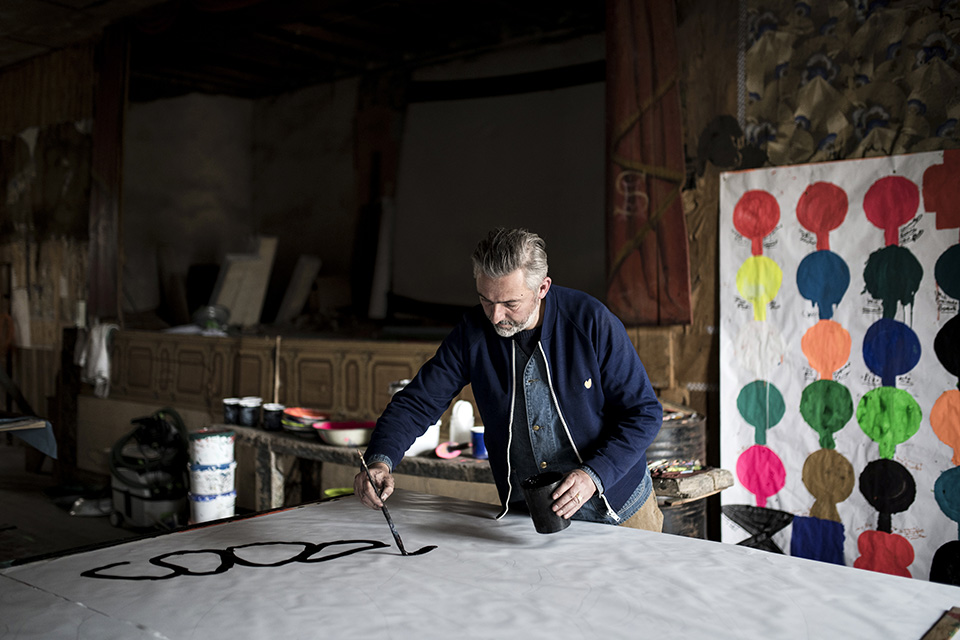 Dans son très vaste univers se côtoient dessins, graphisme, affiches. Ses œuvres sont d’ailleurs exposées dans des galeries, dans la rue, des théâtres (Garonne, Sorano, l’Escale Tournefeuille, Pronomades, la Manufacture de Nancy, etc., etc.), sur des supports de communication pour des programmations culturelles ou des festivals, dans des librairies (il crée des livres d’enfants)… jusque dans des lieux aussi improbables que le stade toulousain, la Fondation pour le logement des défavorisés (ex-Fondation Abbé-Pierre) ou des Ehpad dans lesquels il fait entrer l’art, avec « un concours des résidents seniors ». Depuis son petit village d’Aurignac (31) qu’il se refuse de quitter, l’artiste continue de façonner son imaginaire.
