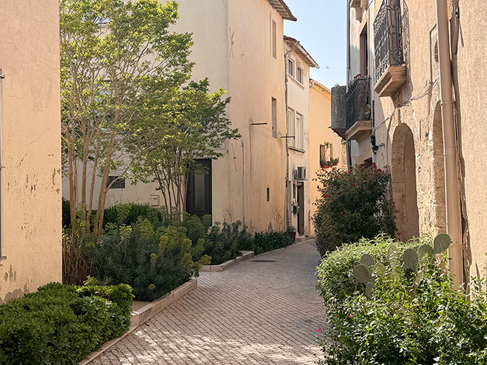 Le programme se clôt en juin avec une balade matinale dans Montpellier, guidée par le CAUE sur le thème des cinq sens au jardin, et une visite à Vic-la-Gardiole pour présenter un projet concret de renaturation d’un centre ancien (18 juin – lire plus loin). Un exemple de ce que peut donner, à plus grande échelle, l’attention portée au vivant dans l’espace public.