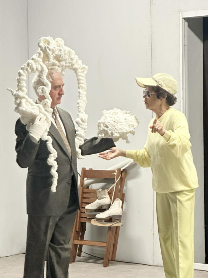La pièce met ainsi en scène un art totalement libre : tout peut devenir art dès lors qu’on le définit comme tel, comme on le sait depuis Marcel Duchamp et ses ready-made, objets rendus artistiques par leur inutilité même. Le théâtre défend ici un anti-productivisme assumé : les personnages prennent le temps, s’interrogent, expérimentent, décident, essayent, font et refont. Ils jouent, et ce dans tous les sens du terme : comme acteurs, bien sûr, mais en exerçant aussi le jeu enfantin qui se situe dans le simple plaisir de créer, de prendre un temps pour des actions à portée visiblement inutile. Si ces dernières peuvent paraître futiles, c’est justement tout l’enjeu que de s’extraire de la course aux logiques de production/ consommation qui prévalent dans notre monde.