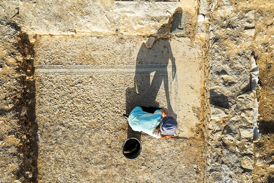 Le dispositif est intimiste. Il accueille cette parole spontanée au centre de la petite salle drapée dans le noir. La « Maison des fouilles » où sont disposés des objets est éclairée par des lampes tamisées : fragments de poteries peintes, tessons, coupelles odorantes remplies de poix, carnets, dessins, un studio de photographie et divers instruments de mesure… En fond de scène, les images d’une fresque d’une fraîcheur surréelle succèdent à celles d’un chantier de fouilles. On y voit s’activer une pelle mécanique. Les « corps enfouis » sont ces vestiges ensevelis dans la boue, dans l’eau. Ou bien, comme ce bateau à fond plat retrouvé presque intact avec sa cargaison d’amphores, dans une digue qu’il avait servi à colmater lors d’une crue dévastatrice sur le site de Mandirac. « Déterrer permet de rendre visible la vie qui entourait ces objets, dit Corinne S. Chaque couche archéologique est comme une page qu’on arrache. »