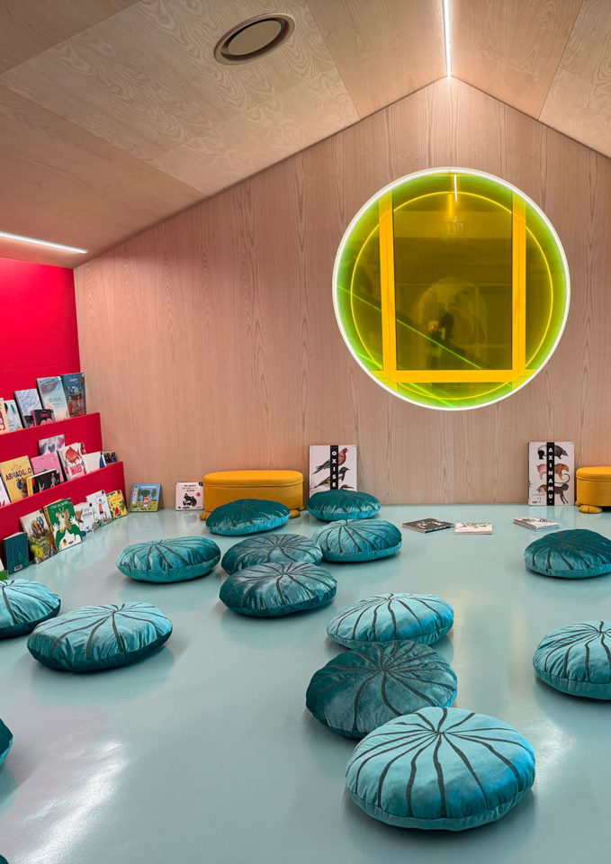 Bonjour !, café miam miam, la formilière, la cabane, le mimu… les noms des huit espaces dédiés au public ont été choisis par un groupe d’enfants lors d’un workshop, une manière interactive de leur faire prendre pleinement possession du lieu.