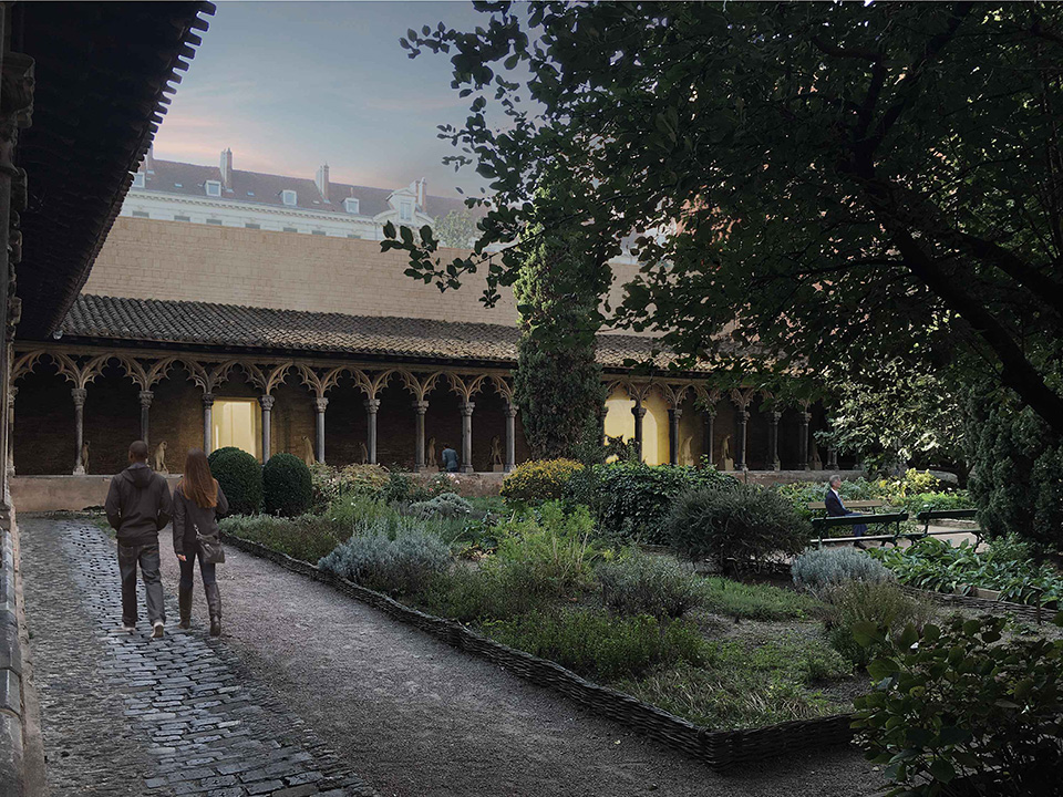 Selon Laure Dalon, trois mots ont guidé le projet : convivialité, à rebours de l’ambiance austère de cet ancien couvent du XIVe siècle ; responsabilité, qui donne accès à la compréhension des œuvres tout en restant connecté au monde ; liberté, les différentes salles réparties autour de ce cloître central, par exemple, offrant une déambulation affranchie du sens chronologique de la visite. Le visiteur pourra ainsi s’autoriser une divagation intuitive ou thématique. Pour l’ouverture, le thème du ciel guidera d’ailleurs la redécouverte des trésors du musée, en référence à la vue de ce cloître précisément, et à l’iconographie céleste qui inspire art et spiritualité depuis la nuit des temps. Des gargouilles alignées sous un film plastique et venues du couvent des Cordeliers attendent qu’on s’occupe d’elles. Ce thème en sera-t-il l’occasion ?